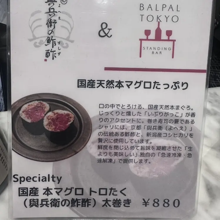 「與兵衛の鮓酢(よへえのすしず)」と、BALPAL TOKYOさんがコラボレーション。特別メニュー「本マグロトロたく太巻き」が商品化しました。