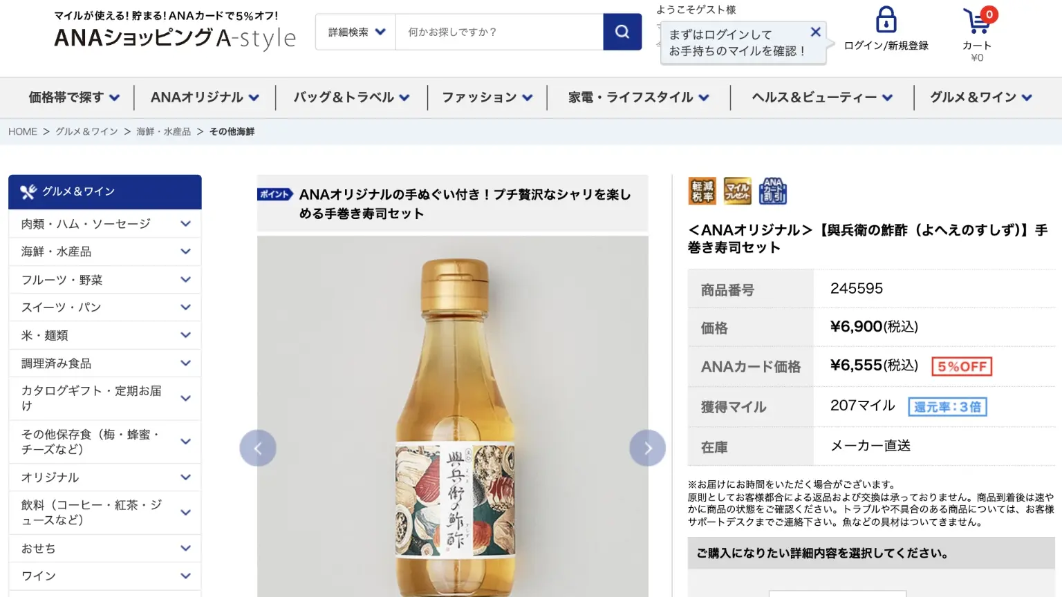 ANA公式ECサイト「ANAショッピング A-style」にて、與兵衛の鮓酢 手巻きセットの販売が開始されました。ANAのマイルでもご利用できますので、ぜひご覧ください。